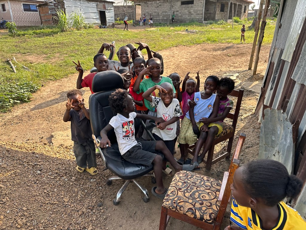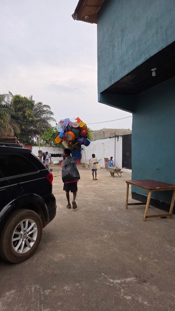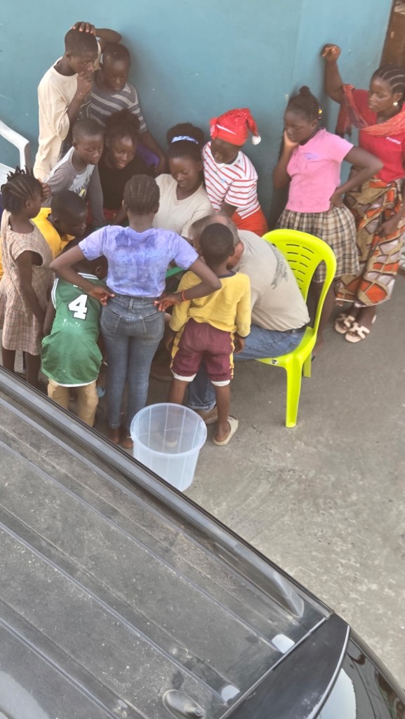 This morning didn’t start like all the other mornings, instead as we were still in our bedrooms we could hear rhythmic clapping and small voices. It wasn’t really loud, but I knew it was deliberate. I finished my reading and came out of my bedroom to find Renee saying they wanted us to go downstairs. Leo came out about the same time and we all came down the circular stairs where there were probably 20, mainly very young faces. Renee and I went to sit on the couch with children all around at our feet and Leo stayed midway down the circular stairs. None of us had our phones along and truthfully I’m glad we simply experienced this tender scene of quiet singing followed by testimonies from mainly the younger children. At first there was leading in prayer of thanksgiving for something. When the younger ones talk in the Liberian dialect of English and colloqua, you have to kind of guess what they say. Some are easier to understand than others. Many simply stood up stating that ‘they are thankful to God for…’ with reference to the ‘team’ or something like that. We were moved by their genuine confession of thankfulness towards us. Some would stand up and simply quote a Bible verse. This was followed by wishes of safe travel and reunion with our families. Emmanuel came out and sat beside Renee and me and he led things through from there. We ended, after many kind words, with a prayer for our travels. We dispersed and headed back upstairs. Renee and I enjoyed an omelette with onions and cut up tomato slices along with our coffee. Leo is still nursing an upset stomach so he skipped the breakfast. Thankfully he’s feeling better now.