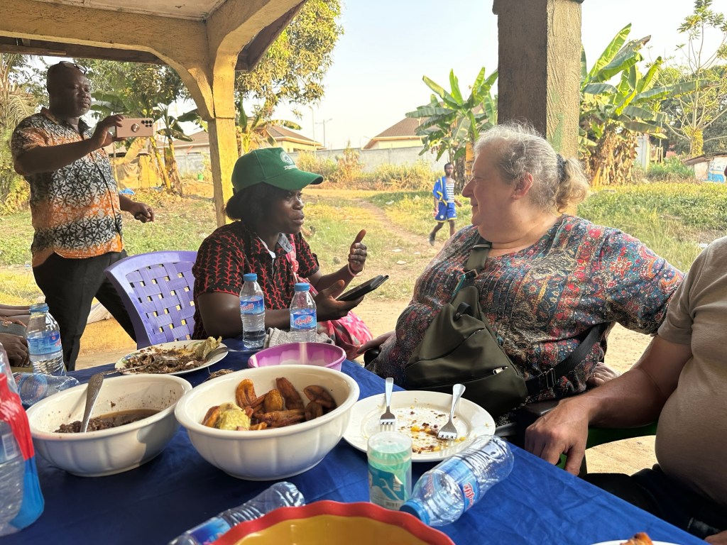 We arrived back at Emmanuel’s, greeted by so many as the long missing members of the family. It was good to get ‘home’. We had a good meal of cabbage type soup and chicken over rice. It was very good.