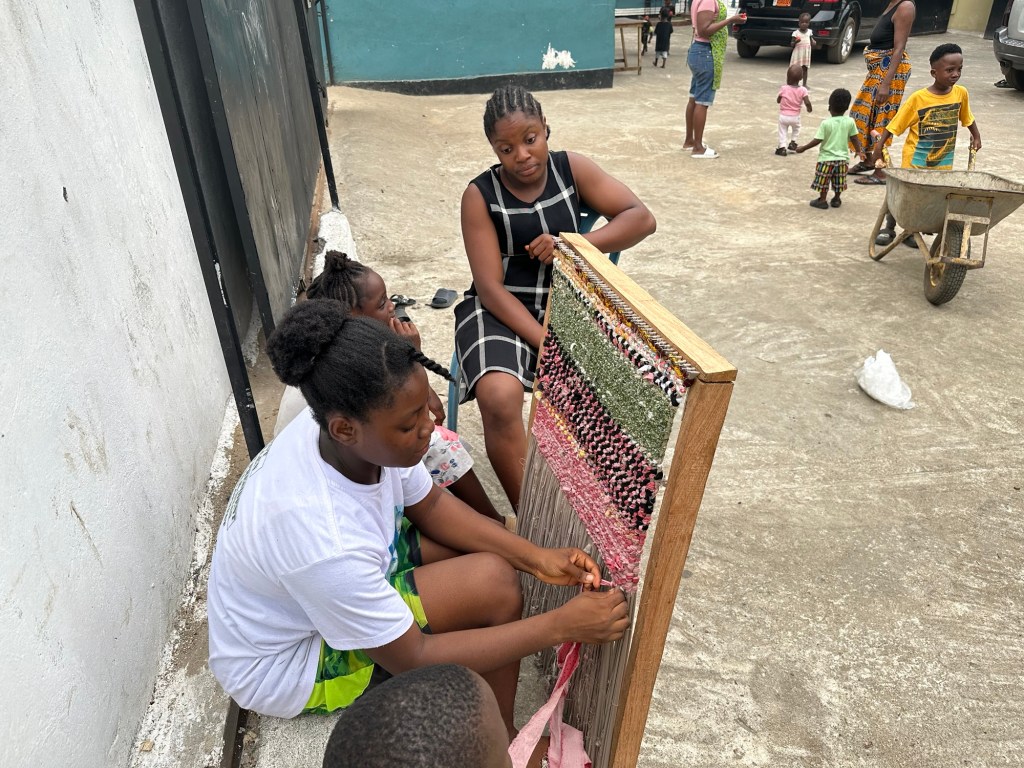 After the meeting I watched the girls (formerly from the orphanage) working on a rug with the loom built by Leo.