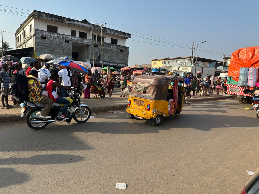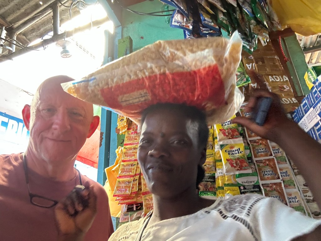 Shortly after lunch I took a cool shower to settle the burn and then we were off to Red Light to shop for tomorrow. We plan to have a family party tomorrow afternoon with Titus and his family invited. Mother Wintee had her list so I headed out with her, Philip, Meko, Princess and Elizabeth. This trip to Red Light was to shop for food, so it was different than when Leo and I went there to buy fabric. Here are a few pictures.