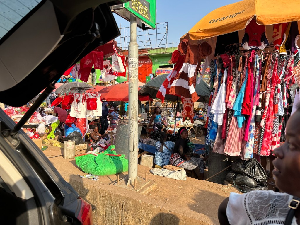 When we got back from our walk Emmanuel wanted to check his new car out for a problem, and there was some shopping needed for Wintee and Meko. Anytime you go to ‘town’ it is interesting. Emmanuel left early on a motorbike taxi and Philip drove me, Renee, Wintee and Meko, first of all to find Emmanuel and then on to the stores. Meko planned to buy a ‘DK bag‘ (colloqua for a bundle of used clothing from another country that they buy, breakdown and sell in pieces). They are a good size and they sell for $100-$200 US dollars. They have three grades of quality that determines the price. Meko bought a bundle of women’s underwear that she will breakdown and sell. I was at the house when she opened the bundle. That’s a lot of underwear! She said they sell for $100-200 LD (Liberian dollar currently exchanging at 182/1 US dollar).