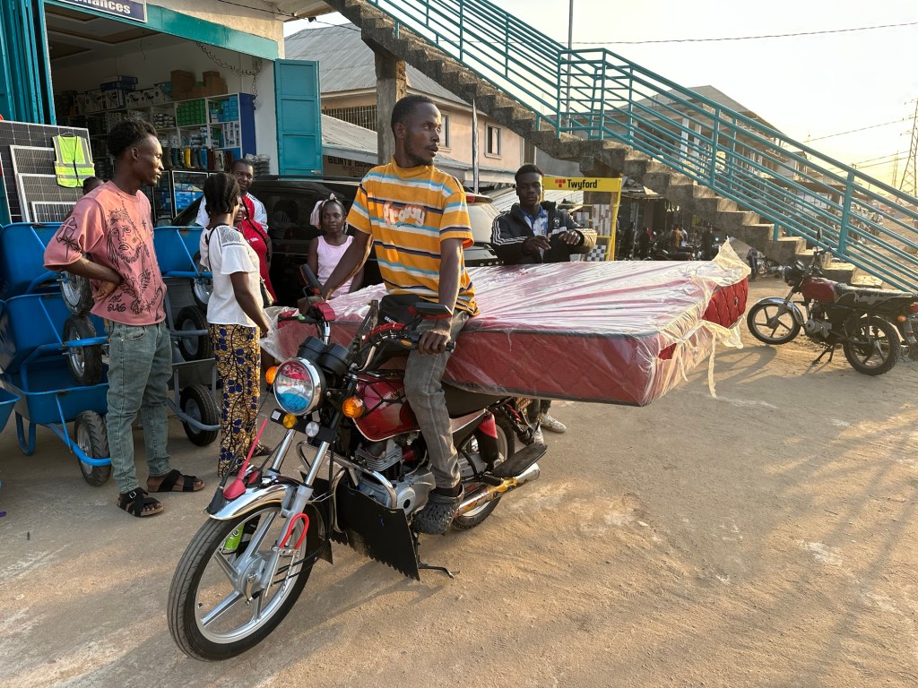 The last thing we wanted to do was to pick up a mattress for Princess. She has been sleeping on a little pad on the concrete floor, so we headed there. Of course Red Light has this too. After we purchased the mattress Philip went to secure a delivery to Emmanuel’s home. I came outside and what do I see. I told the shop owner this is crazy and he simply laughed at me. This too is Liberia.