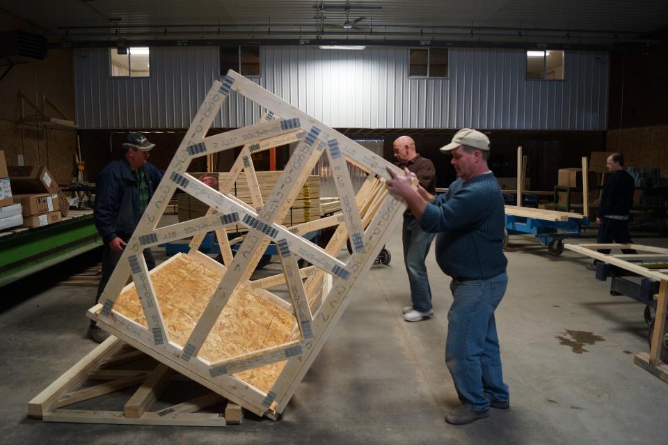 a great group of people helping to load up my truck and Fred’s van and then Fred, Renee and myself hauling everything collected 32 miles north to Wendricks Truss, (pic of same boxes stored on a truss table at Wendricks Truss {and Renee again posing})