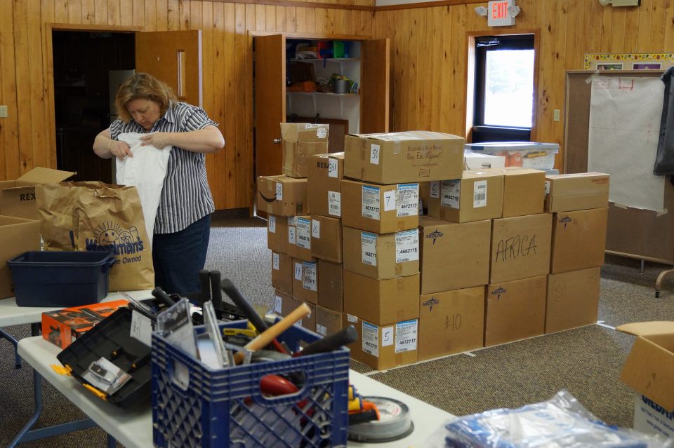 From finding out that the container to Liberia was at 80% full last Friday, to Saturday (pic of boxes at church and Renee organizing)