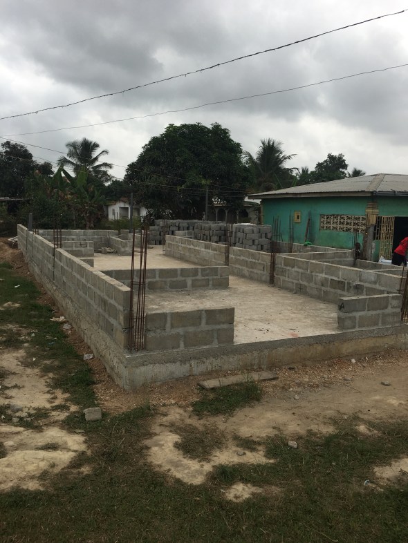 Before the cake Emmanuel and I were sitting in the building under construction next to his home. For all of you who’ve been here, you may remember the lawn that was being cut with a machete like tool one time to a volleyball court on another visit. This visit brought the change with the start of a guesthouse that Emmanuel and Wintee hope to use to house visiting missionaries and teams. The slab is poured and a couple rows of blocks are laid. Emmanuel plans on a 2 story building with an indoor kitchen. That’s pretty big news.