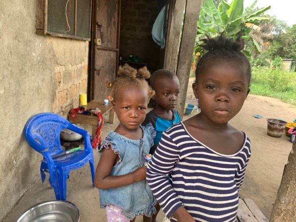 The two kids in the back were scared of us until they saw that Jenny had a sucker for them. She plans ahead when it comes to the kids. There are so many kids in the community.