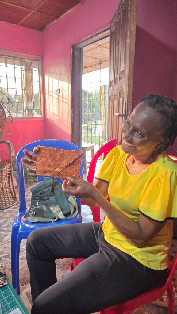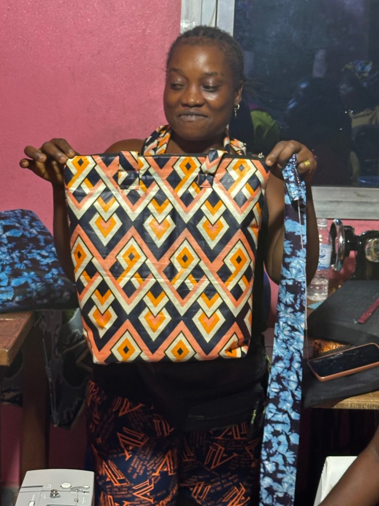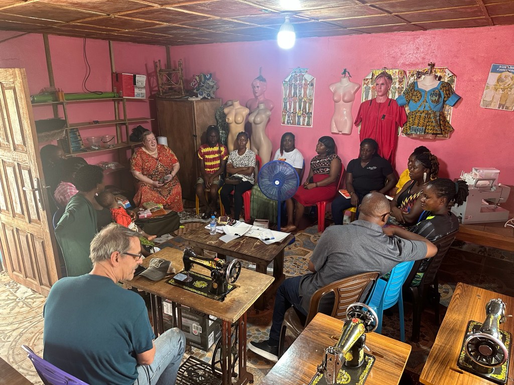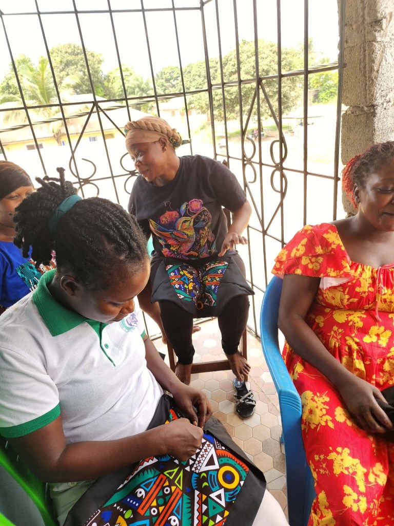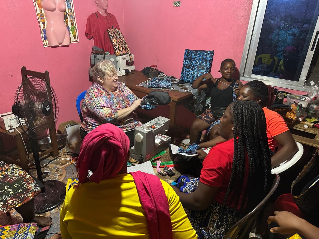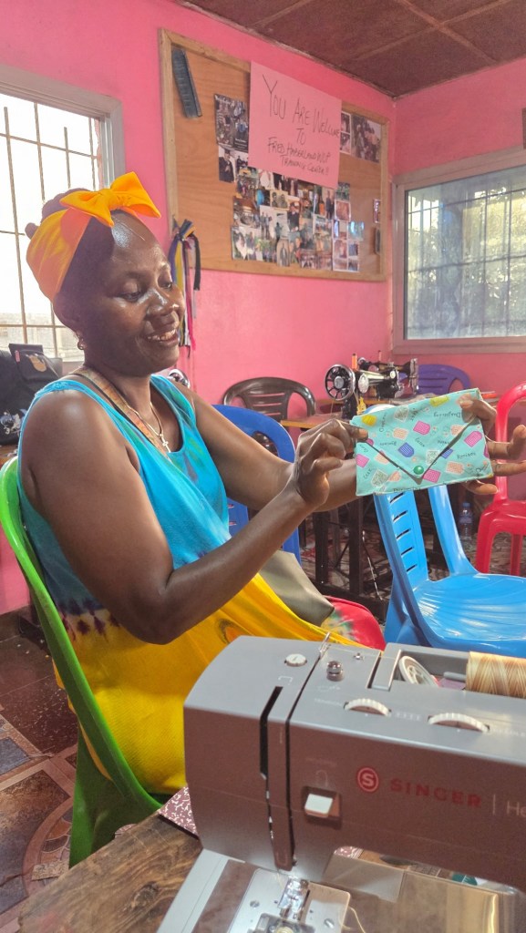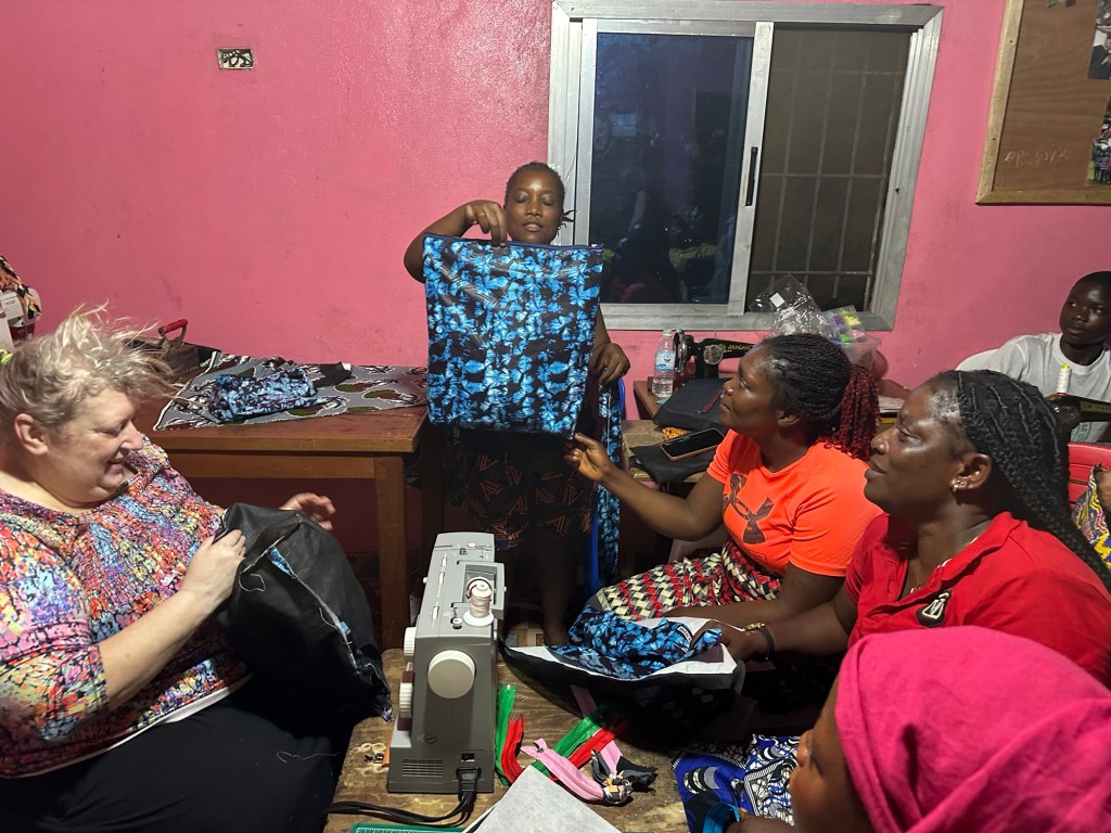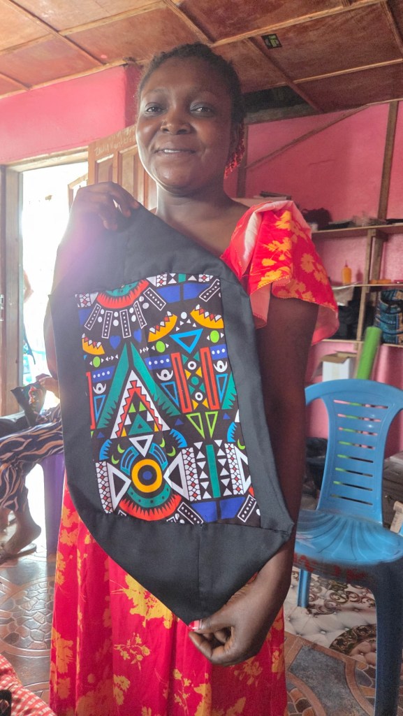 Renee was underway teaching, wondering how she would handle things today since the participants were going through the fabric she brought from the states quite quickly. One of the items we were picking up was more fabric for her class. she was concerned how she could slow them down and take more time in teaching. She shared how she prayed for an idea of what to do. Enter the unreliable electric current in Liberia. The power went out before she even got started and all the sewing needed to be done by hand, giving her the chance to teach since things moved at a slower pace.
