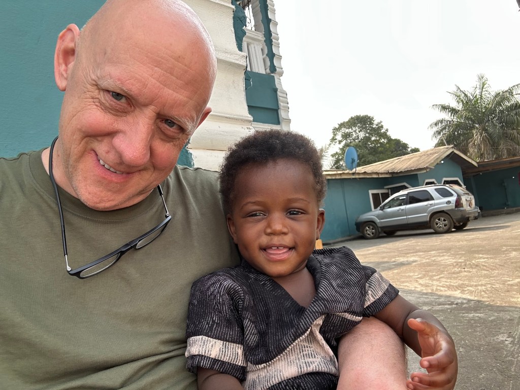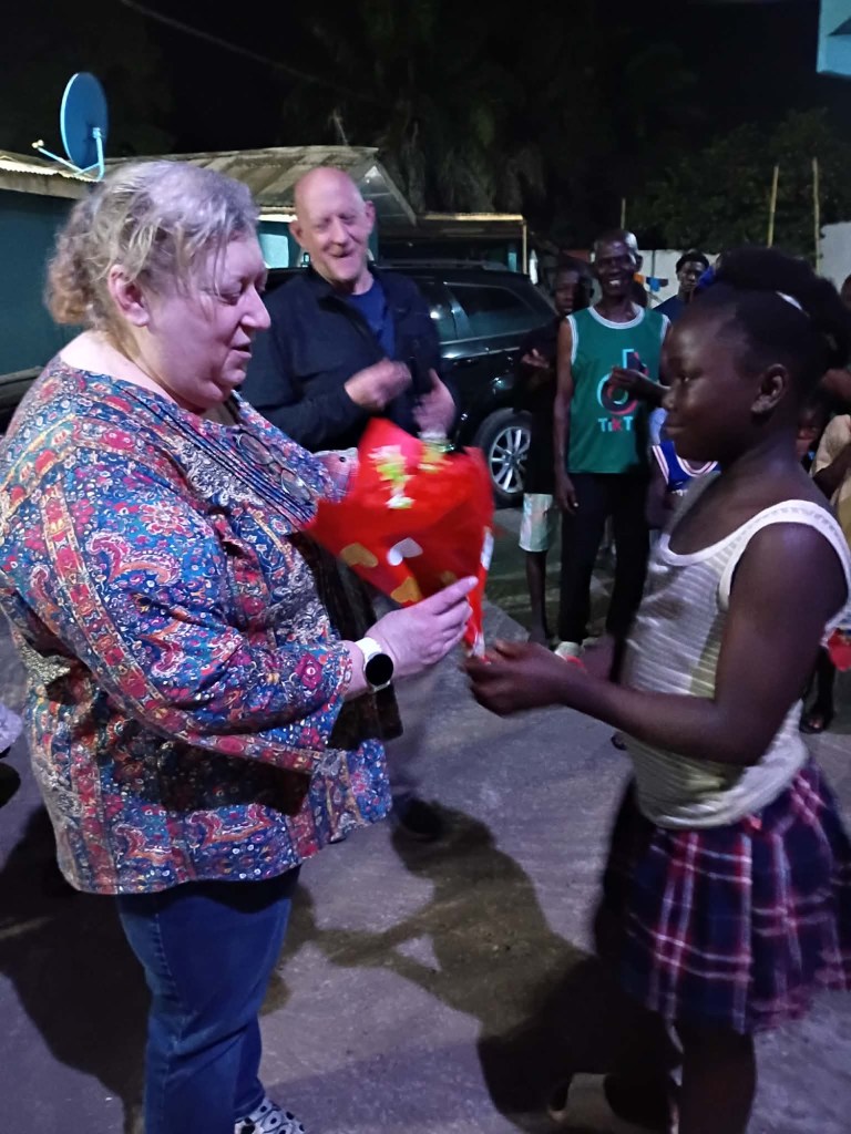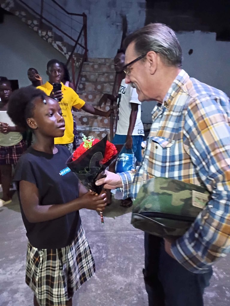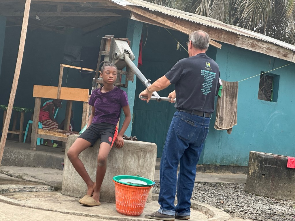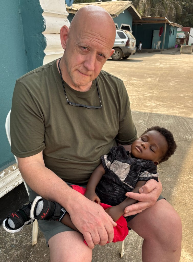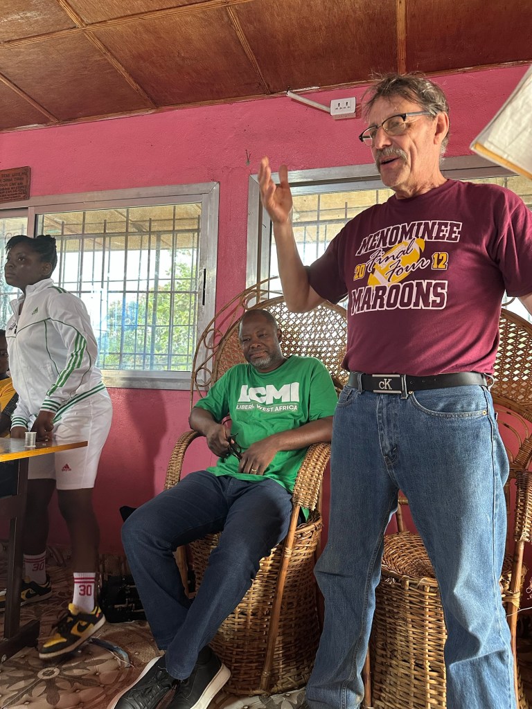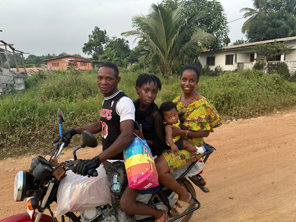 Afterwards we ate some lunch and I took some time to set up a Starlink mini to see how it will work. So far, so good. The cell coverage can get weak, especially in the evening. This seems to be a good solution for allowing each of us access to back home as well as Emmanuel and maybe some others to have internet regularly during our stay. As I was finishing up the Starlink I looked up and saw Mother Mercy walking up along with Yeitoyee Renee, Pastor Titus and Mercy’s daughter. Mercy also had Seth, her sister’s son along. Titus and Mercy are now parents to Seth after her sister died during childbirth. They graciously welcomed this little boy as their own. He is growing well and is now 5 months old and quite a little chubby boy. Pastor Titus is at his church (ULIC) denomination’s national convention in Ganta until Friday. He will be the speaker at the convention tomorrow night. He will travel back on Friday. We will catch up with them more when he returns. After giving them some gifts, I saw them off on the motorbike. I’m not sure many would like to send people off like this, but ‘this too is Liberia’