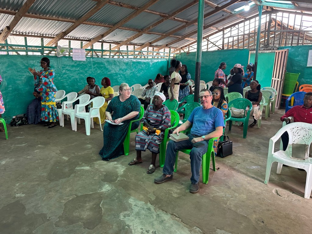 As the church service was about to begin, I was busy greeting old friends and watching Leo and Renee make new ones. Since I was to speak today, I went to sit on their platform with Emmanuel and some of the other deacons/elders. Renee and Leo sat in the front row with an older woman between them.