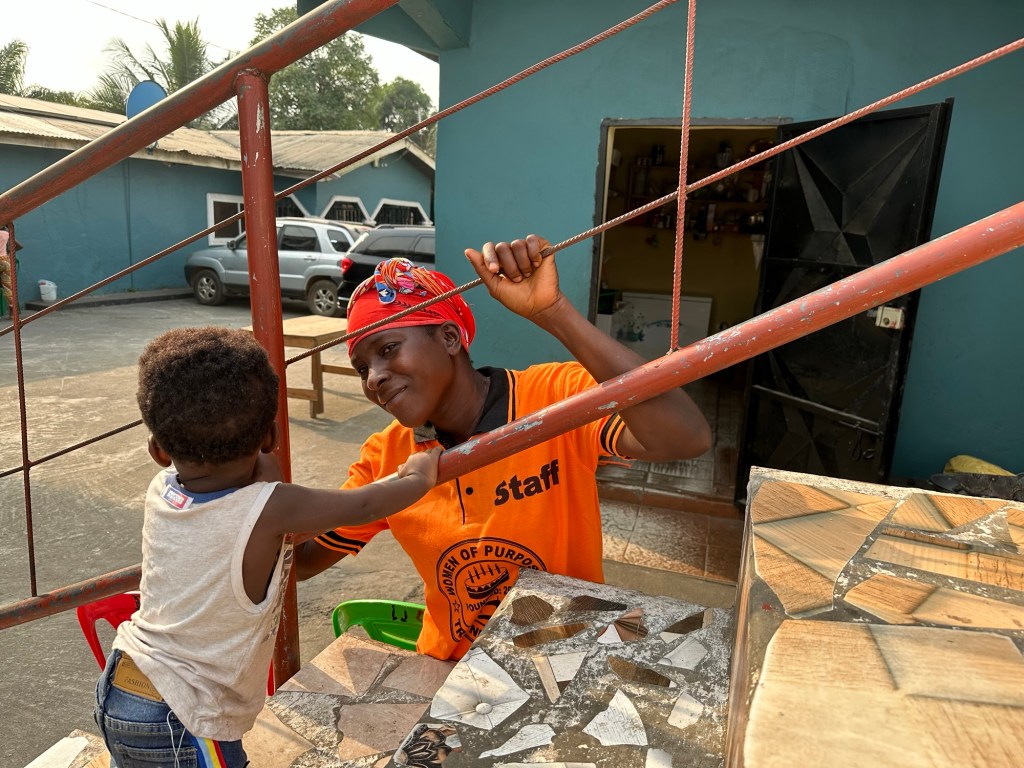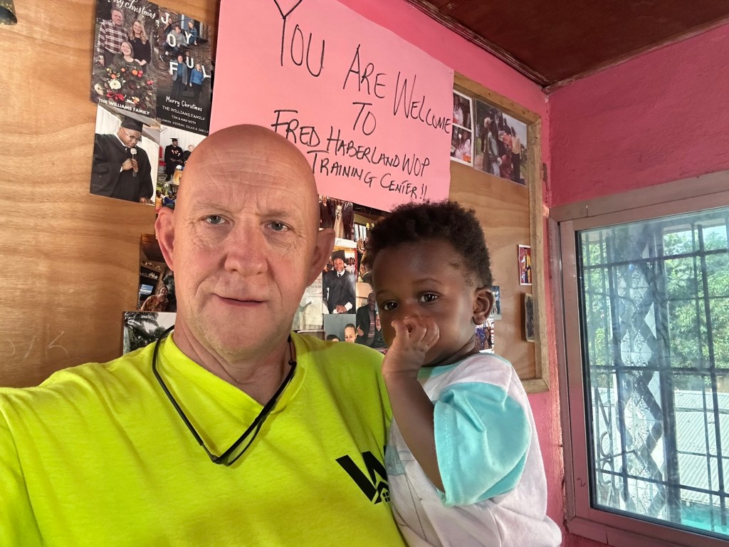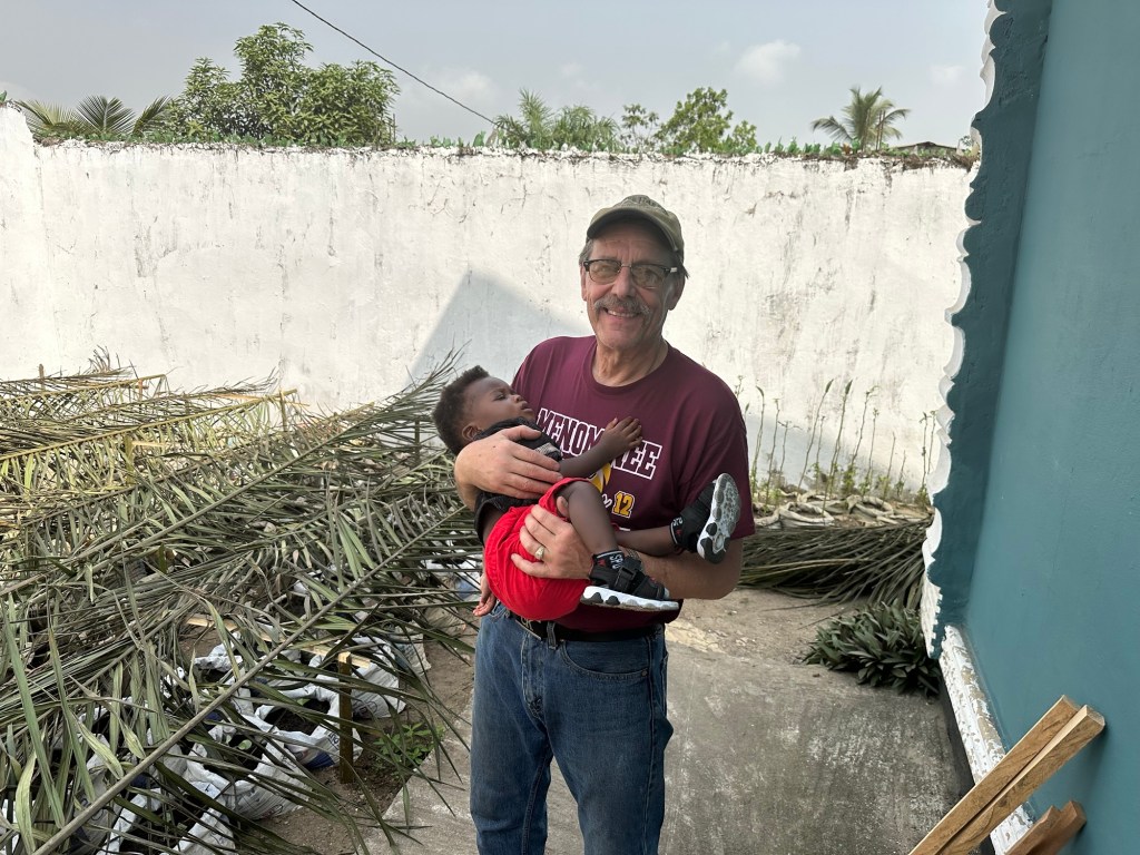 I knew Renee would be especially busy in her first day with Women of Purpose. That turned out to be very true, but Renee just stepped in and kept going. We all watch out for one another, as the heat here is not normal for us and we need to watch out for letting the heat get to us. Even though we have power, air conditioning isn’t as available. The Fred Haberland Training Center does not have air conditioning. In fact we picked up a floor tower fan and a ceiling mounted fan to be used in there to keep air circulating. Leo and I started our day after breakfast with devotions with the ladies of WOP (all future reference to Women of Purpose). I was able to hold a little boy of one of the women attending. I’ll take that any day.