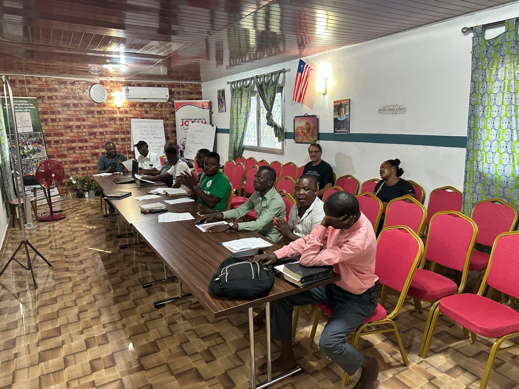 When Leo and I walked for a while, I received a text from Emmanuel saying we were to come back because lunch was ready. We came back to some collard green soup over rice and fresh fruit. It was then that Emmanuel explained something he told me earlier, but I misunderstood. My time of teaching is from 4 to 6 PM and Wednesday night there is midweek service at the church. Emmanuel planned that I would do my teaching in the church from four until church started at six and continue teaching until church is over at seven. The evening ended up being quite busy for me after all. After our late lunch I had time for a quick shower and begin teaching shortly after 4 and we finished just after 7 PM. Immediately after the service the garden guy, Aloysius, was there to begin the watering from 7:30 till just after 8 Leo and I carried water so the plants could get watered this evening. It may not seem like a difficult thing, but the water comes from a hand pump and is carried to where the plants are growing and the humidity is really high. When we finished both Leo and I were soaked with sweat. This too is Liberia.