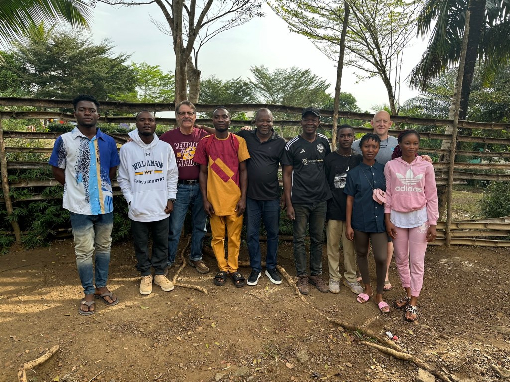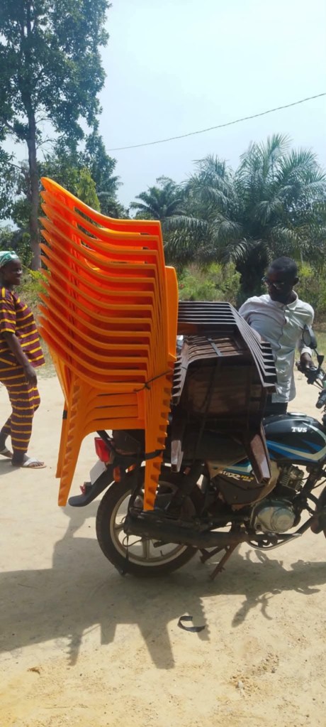 Just before 4:00, we headed across the road and there were chairs being brought over and surprisingly there were many people coming to sit and listen. The moderator started by welcoming all and then Leo began sharing the Gospel and his thoughts about what he believes. The idea of the day was to have a few comments and then questions so a discussion would flow. It was very interesting. We had one gentleman that considered going to a mosque, but he knew the Bible well enough that he couldn’t get himself to go. We encouraged him to just Emmanuel’s church. Emmanuel came over about halfway through and aided in the discussion. Liberians love to have deep discussions and this one was so interesting to see the interest in our thoughts on the Bible and why we think the Bible is the true way. This invite came because Leo took the time to get to know some of them and anytime they’d see Leo eating on the porch or walking by, you’d hear them call out to him. His used Leo’s friendly manner to lead to a deep discussion on the Bible with the clear testimony of salvation proclaimed. After we finished, thru said they hope to continue these discussions in the future and that anytime we are around they hope we will join them. They want to have a safe place to play checkers, discuss politics and religion and hopefully learn things. They want to keep out all drinking and anything that will detract from clear headed discussion. Emmanuel presented Bibles to them with some muffins and water yo share. They were all invited to join LCMI church with the promise that Emmanuel would pursue further interactions with the group. Here’s a few pictures of the meeting.