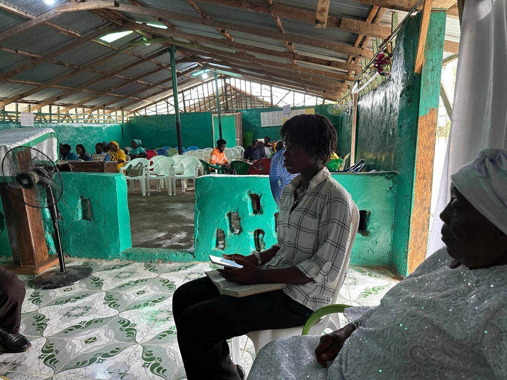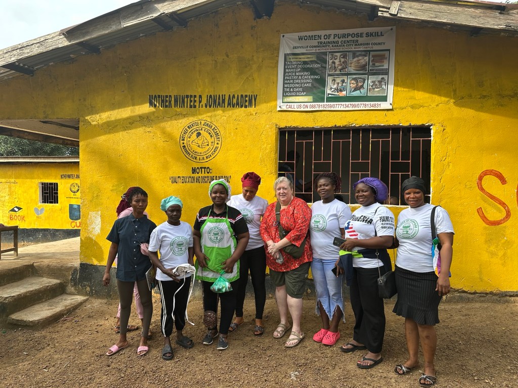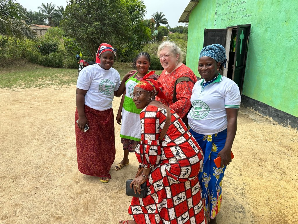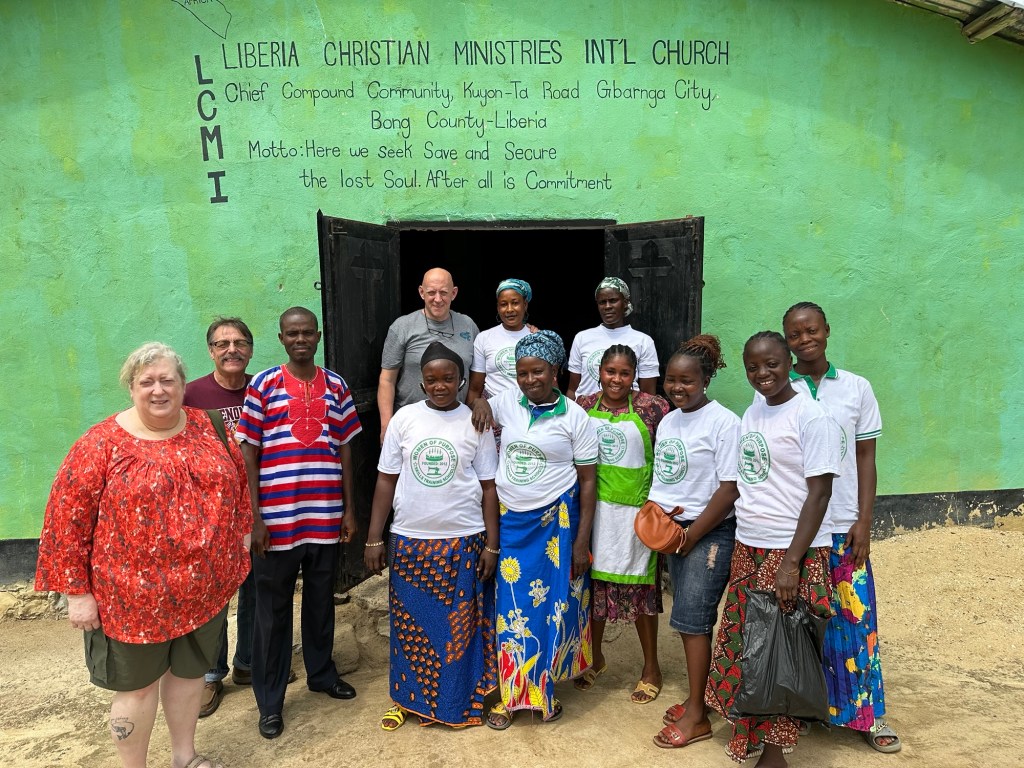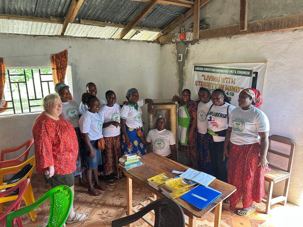 We left there and headed to the next chapter in Gbarnga, about 1-1/2 hours further along our way. When we arrived there the women were so happy to see Renee, as cat least one had attended the class in Monrovia the week before. Thus LCMI church and chapter is one of the poorest ones. Here’s there church. Jenny and I were able to visit them 2 years ago as well and I remembered some people.