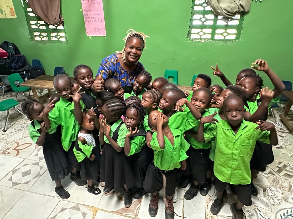 We enjoyed watching all the growth in Liberia as we travelled along the road towards Yekepa. Our plans were to meet a couple of WOP chapters along the way. First stop was Kakata, about an hour from Monrovia. There is an LCMI Church and a WOP chapter located there as well as a school connected, called Mother P. Jonah School. We stopped to greet the kids at the school, took a few pictures, and had the WOP ladies that could make it say hello and we took a few more pictures.