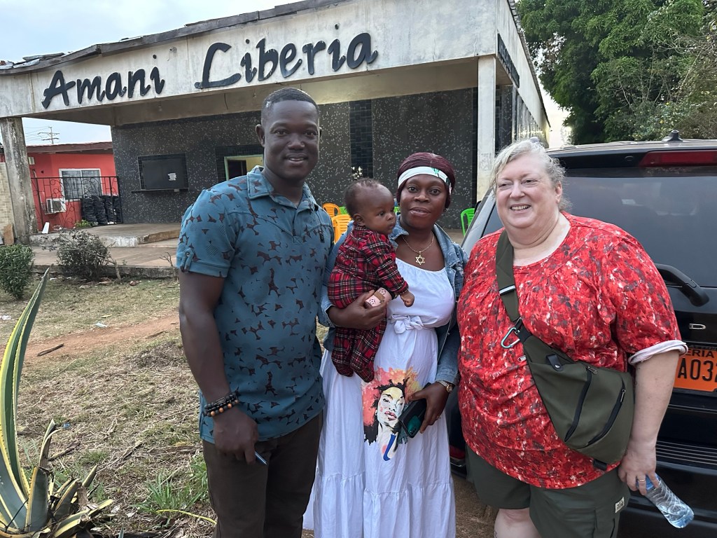 Next stop was Ganta, where Mother Wintee got out of the car at a corner to walk to meet the waiting women at the Ganta chapter. The rest of us headed over to our guesthouse to drop off our bags and get back to the WOP waiting. It was decided first we would get some lunch at the guesthouse where we were assured it would be 15-20 minutes for our food. After 30+ minutes Emmanuel said Wintee was waiting for Renee, so we headed out without our munch, telling the staff we’d be back to get it.