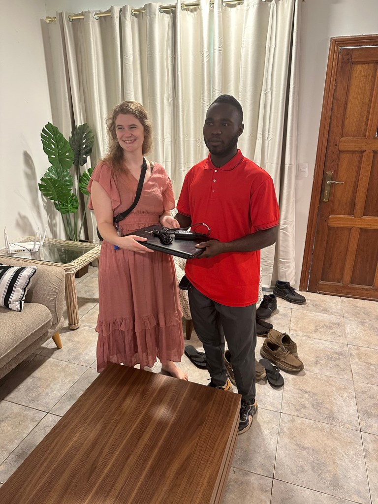 We arrived to check on Renee, as we met Emmanuel and Wintee as they drove back to the guesthouse. Renee had everything under control. Leo and I decided to walk to a local store and while Leo bought a cold drink for both me and Renee, I purchased some suckers to hand out at WOP. Both were a hit. Leo and I got a chance to sit and talk while checking in on Renee every now and then.