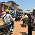 When we got back from our walk Emmanuel wanted to check his new car out for a problem, and there was some shopping needed for Wintee and Meko. Anytime you go to ‘town’ it is interesting. Emmanuel left early on a motorbike taxi and Philip drove me, Renee, Wintee and Meko, first of all to find Emmanuel and then on to the stores. Meko planned to buy a ‘DK bag‘ (colloqua for a bundle of used clothing from another country that they buy, breakdown and sell in pieces). They are a good size and they sell for $100-$200 US dollars. They have three grades of quality that determines the price. Meko bought a bundle of women’s underwear that she will breakdown and sell. I was at the house when she opened the bundle. That’s a lot of underwear! She said they sell for $100-200 LD (Liberian dollar currently exchanging at 182/1 US dollar).