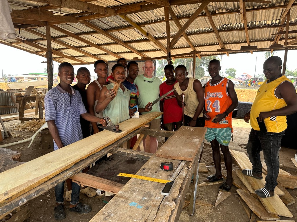Immediately following the service we walked over to what is now known as the ‘Fred Haberland Training Shop’. This is connected to Emmanuel’s property and faces the road for selling to the public. This will be a training center for Women of Purpose, skills training. Many women have been helped to learn a trade to help take care of the family along with Godly teaching as overlaid in all their training. It was an emotional tribute that was shared where Jenny and I both shed tears as we remembered Fred’s love for the people of Liberia and we remember our love for Fred. We recorded the dedication for Renee so she can see the legacy of Fred passed on to Liberia.